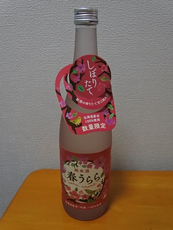 北海道産米「吟風」100%使用、春限定しぼりたて甘口純米酒です。